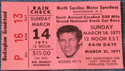 1971 - Starting from the outside of the front row, Richard Petty leads about 200 laps and wins the Carolina 500 at Rockingham - his 122nd career victory. Teammate Buddy Baker in a white, #11 Petty Enterprises Dodge Charger finishes 3rd.