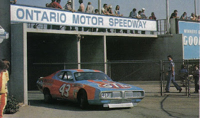 Other than his Petty Blue Plymouths of 1966-67, the 1974 body style Charger was perhaps Petty's best race car. When Petty drove onto Ontario's surface, it would be the next to last time the Charger raced. The Level Cross bunch prep'd the car just one more time for a Cup ride in the 1978 season-opener at Riverside International Raceway road course.